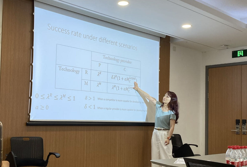 严婷婷教授首先通过苹果-三星”以及“本田-通用摩托”的合作向大家分享了现实世界中竞争者之间合作创新的实例。同时,她通过对业界采购经理进行访谈了解了企业对竞争者合作创新的看法:有些采购经理不认同,认为这是高风险;有些则赞同通过这种合作可以共享风险和成本,互相补充知识,利于企业创新发展。从文献角度,严教授分析了现有文献中对供应商选择考虑的因素,以及讨论了现存文献中竞合关系下的技术管理问题。
