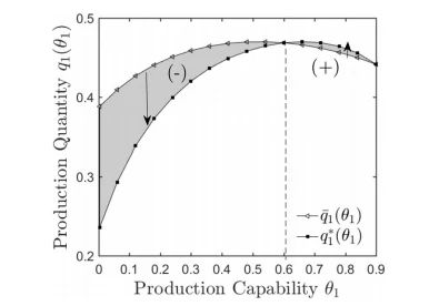 张伟团队通过调整合同参数,从而探索对商家利益的影响。根据模型数据,他们发现产品的最优生产量相比于完全信息的生产量可能会同时出现向上和向下的波动,这取决于农户学习曲线的特性。例如,通过模型曲线,可以进一步分析出究竟是历史生产效率高的农户,其边际学习率可能会更高,还是历史生产效率低的农户,其边际学习率可能会更高。