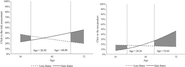 图2 研究中筛查点击行为与信息框架及年龄的关系