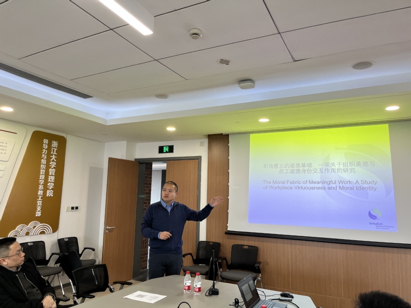 1219日上午,“与主编面对面”系列第十四期讲座邀请到约克大学舒立克商学院的组织研究副教授祝磊老师,与管理学院师生围绕The Moral Fabric of Meaningful Work: A Study of Workplace Virtuousness and Moral Identity”主题展开交流。本次讲座由领导力与组织管理学系王政老师主持。