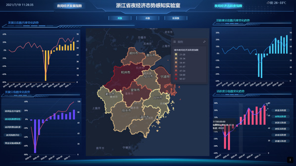 由应天煜团队牵头创建的“浙江省夜经济态势感知实验室系统”省级界面