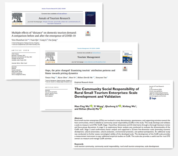 多年来,在浙大管院有组织科研部署下,旅游与酒店管理学系在建设世界一流学科上奋力开拓,持续面向国家战略需求与全球重大挑战,开展“顶天立地”的学术研究,建构中国旅游管理学自主知识体系。至今已在《Tourism Management》《Annals of Tourism Research》《Journal of Travel Research》《管理世界》《社会学研究》《自然资源学报》《农业经济问题》等国内外文化和旅游领域顶级期刊发表论文数百篇,出版学术专著十余部,承担国家科技部支撑计划、国家自然科学基金项目、国家社会科学基金项目、教育部社科规划项目、浙江省文化和旅游科技创新示范项目、浙江省文化工程重大项目、浙江省社会科学基金等各类纵向项目三十余项;荣获浙江省哲学社会科学优秀成果青年奖、文化和旅游部优秀研究成果奖以及入围全国百篇重点案例等。