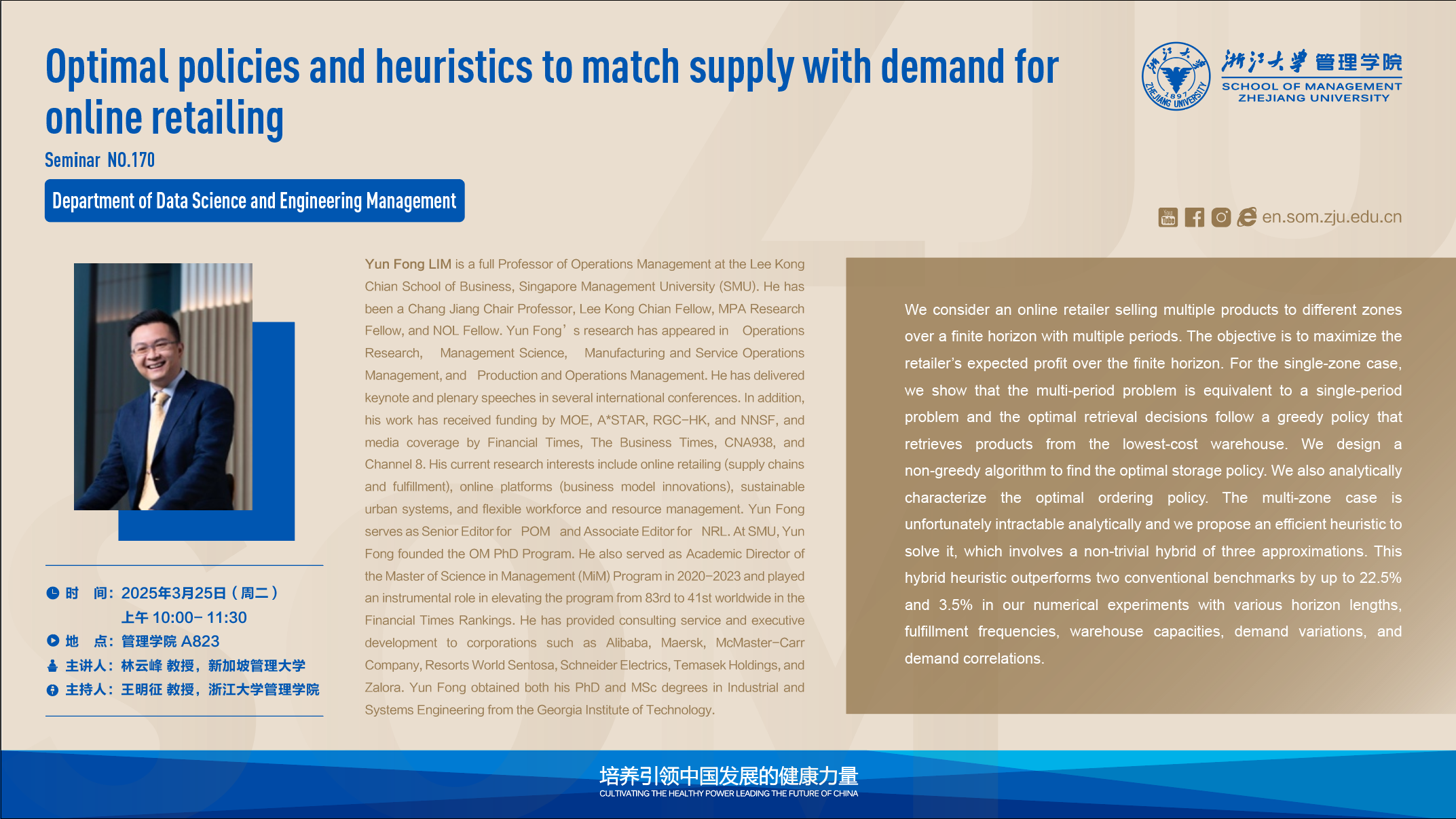 Yun Fong LIM is a full Professor of Operations Management at the Lee Kong Chian School of Business, Singapore Management University (SMU). He has been a Chang Jiang Chair Professor, Lee Kong Chian Fellow, MPA Research Fellow, and NOL Fellow. Yun Fong’s research has appeared in Operations Research, Management Science, Manufacturing and Service Operations Management, and Production and Operations Management. He has delivered keynote and plenary speeches in several international conferences. In addition, his work has received funding by MOE, A*STAR, RGC-HK, and NNSF, and media coverage by Financial Times, The Business Times, CNA938, and Channel 8. His current research interests include online retailing (supply chains and fulfillment), online platforms (business model innovations), sustainable urban systems, and flexible workforce and resource management. Yun Fong serves as Senior Editor for POM and Associate Editor for NRL. At SMU, Yun Fong founded the OM PhD Program. He also served as Academic Director of the Master of Science in Management (MiM) Program in 2020-2023 and played an instrumental role in elevating the program from 83rd to 41st worldwide in the Financial Times Rankings. He has provided consulting service and executive development to corporations such as Alibaba, Maersk, McMaster-Carr Company, Resorts World Sentosa, Schneider Electrics, Temasek Holdings, and Zalora. Yun Fong obtained both his PhD and MSc degrees in Industrial and Systems Engineering from the Georgia Institute of Technology.