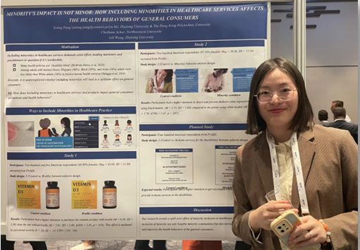 ACR2024 会议上,庞雨婷与导师王丽丽、浙大管院营销系老师杨浙帅以及团队成员合影