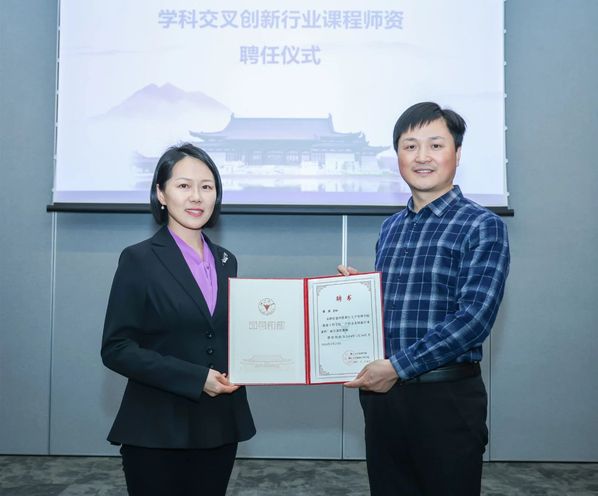 WB官网黄英教授(左)受聘学科交叉创新产业课程教师