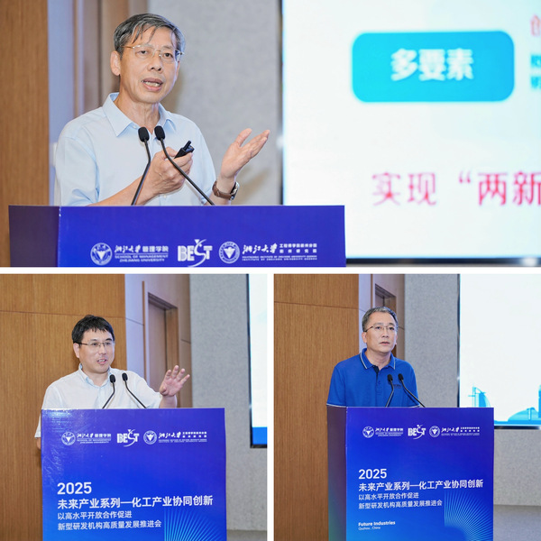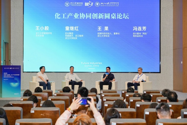 实现产学研用深度融合,既需要自然科学的技术支撑,也离不开人文社科对资源整合、发展模式的创新与探索。会上,中国工程院院士、浙大衢州“两院”院长任其龙,浙江大学全球浙商研究院副院长邬爱其教授,恒逸石化常务副总裁、浙大衢州研究院院长王松林分别围绕“多元交叉背景下的‘两新’融合探索”“专精特新企业创新发展”“高分子材料的绿色可持续发展”等主题展开分享。来自巨化集团、拓烯科技的企业代表与来自浙大衢州“两院”、浙大管院的学者围绕化工产业协同创新展开圆桌对话,为行业把脉献策。