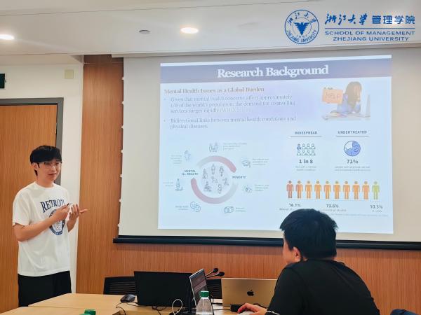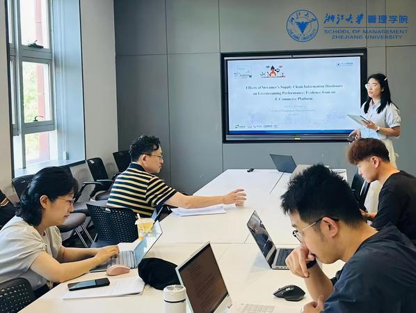 作为本次活动的核心环节之一,博士生闭门论文分享会为青年学者提供了展示研究成果、接受权威指导的宝贵机会。在课程结束后,本活动采用"导师分组指导"模式,由主题课程老师作为评审,针对"数智化供应链优化""生成式AI应用"等前沿主题开展深度研讨。每位老师聚焦4-5篇主题相近的论文,通过小范围、专业化的学术对话,为博士生提供精准的学术指导与反馈。这种精细化指导机制既保障了学术交流的深度与针对性,又维护了研究讨论的私密性,有效促进了前沿理论与研究实践的深度融合。