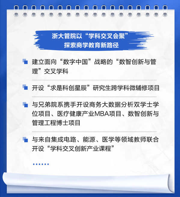 在突破学科和学院边界的同时,浙大管院还不断跨越大学边界,与企业协同创新,建设跨行业、跨领域的商学教育生态;共建“浙大管院—钉钉数智组织联合实验室”“浙大管院—饿了么新型消费与营销智能实验室”等平台。