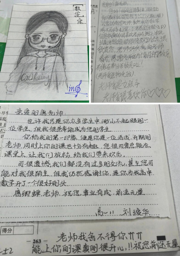 “唐老师,时间过得真快,明天过后数学就不是您教了。虽然我数学成绩不太好,但我真的很喜欢您。”