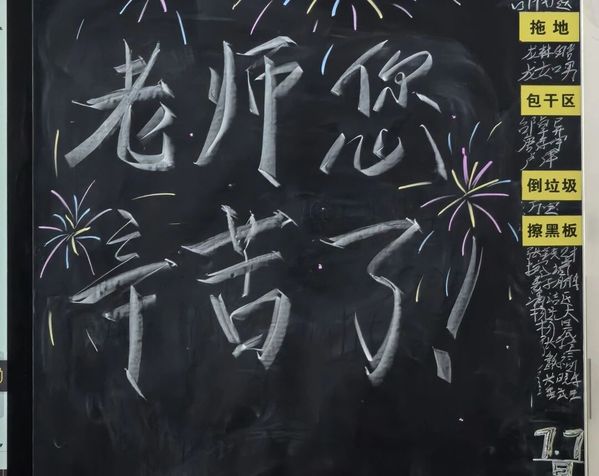 今年7月,贵州省台江县民族中学一间教室内,一场“离别”正在悄然酝酿。唐老师刚推开教室门,就看见了黑板上的字——“老师,您辛苦了!还没来得及细想,她转身插U盘的瞬间,“砰砰!”两道礼花在空中绽开,同学们从课桌下拿出藏了一天的纪念品、手写信纷纷走上讲台,笑声中夹杂着一丝伤感。